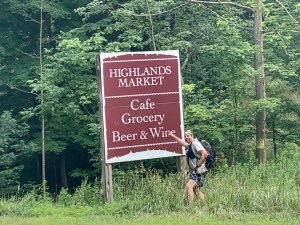 We enjoyed the miles of the day, particularly some really gorgeous hemlock and rhododendron forest in bloom, and eventually crossed the aforementioned road and the Highlands Market in the high heat of the afternoon. While not a bar or restaurant per se, the Highlands Market was an upscale deli and store selling beer and wine for the nearby ski resort of Seven Springs. We got sandwiches and a few beers to enjoy in yard. I even packed some beer out for the evening too. I was more than happy to keep lugging extra food weight for such goodies.
