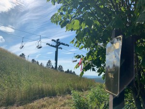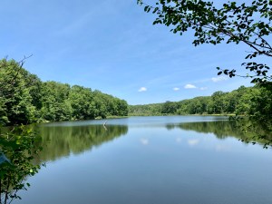 With that, we hit the trail again and the several miles through the Seven Springs resort and ski slopes. This ended up being one of the most fascinating sections of the trip. Seven Springs has horse stables along the way, not to mention ski slopes themselves literally on the trail. It was pretty empty for our summer hike but I can only imagine how cool it would be to stroll through in the winter dodging skis and snowboarders. We took a little break at the top of the resort, at their “Lake Tahoe” and thought a little bit about jumping in for a dip, though signs warned against it. We ended up behaving and boringly chatting about whether or not we had kept up our Wilderness First Aid certification. Tarzan had. I needed to take a refresher course. We also noticed on our map that we were at the highest point on the entire trail. Good place for a ski resort!
