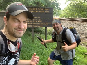 Claudio/Tarzan made our official LHHT shelter area reservations with PA’s Department of Conservation & Natural Resources (DCNR). We settled on three full days of hiking, capped by a bookend late night and early morning of hiking to finish off the two main climbs up and back down the Laurel Highlands ridge. Come game day on July 15, we drove ourselves out from Northern Virginia after work. We met initially at the southern trail terminus in Ohiopyle to drop my car off and drove ourselves up to the northern terminus near Seward, PA. Let the trail begin, we said to ourselves as we cheers-ed our first beers, packed a few more in, and signed into the trail register at 9:00 p.m. to begin our southbound hike.
