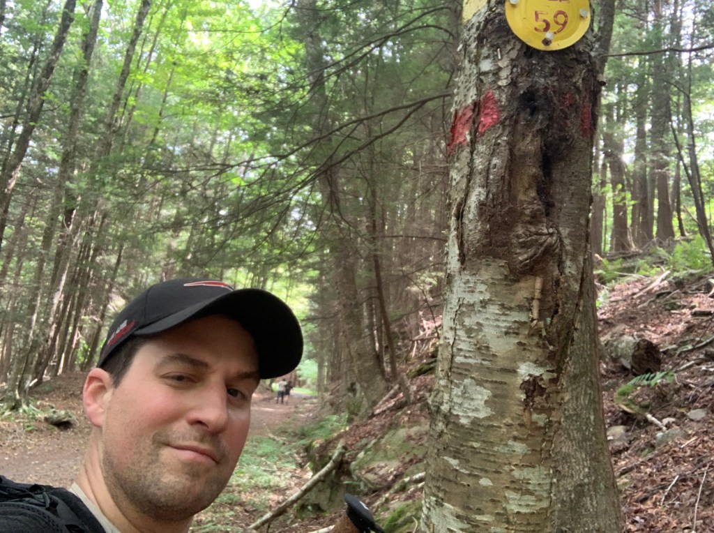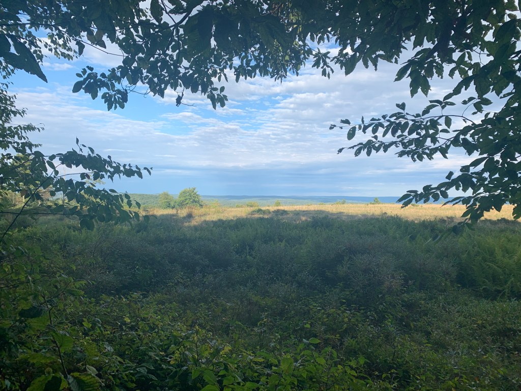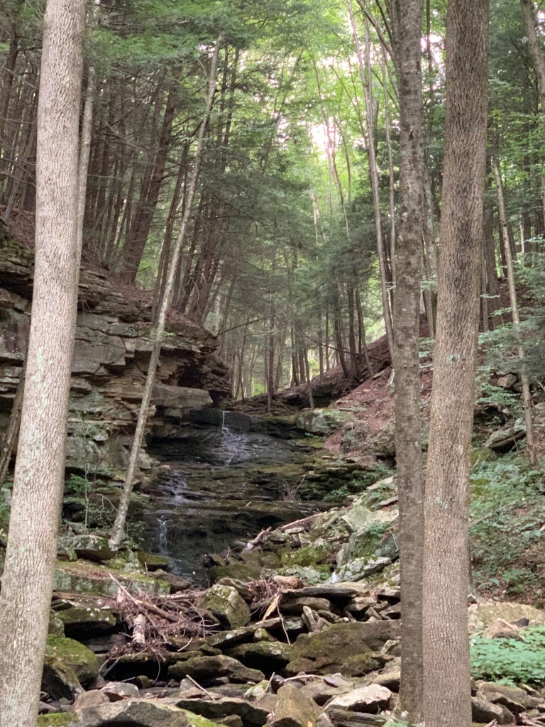 I met my first fellow backpackers around 9:00 a.m. when we both stopped to refill water. They were from New York with a cute trail dog and a five day complete trail itinerary. I could tell already that they were doing it right. I signed the trail register and off I went to explore new vistas and enjoy some amazing trees along the way. The oak, maple, birch, and hemlock forest gave way increasingly to beech groves too. I saw a few ash and elm trees mixed in and marveled at their tenacity to hold on despite the loss of so many of their fellow species. I passed another solo hiker going the opposite direction who was aiming to hike into the night to complete his final 14 miles of trail. He had a big smile on his face and was enjoying the weather and sights as much as I was. I was thankful to be the one who had 45 miles to go.