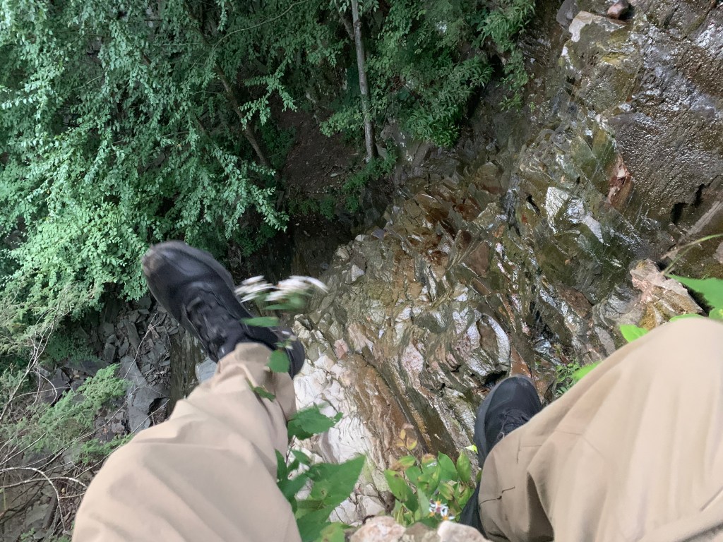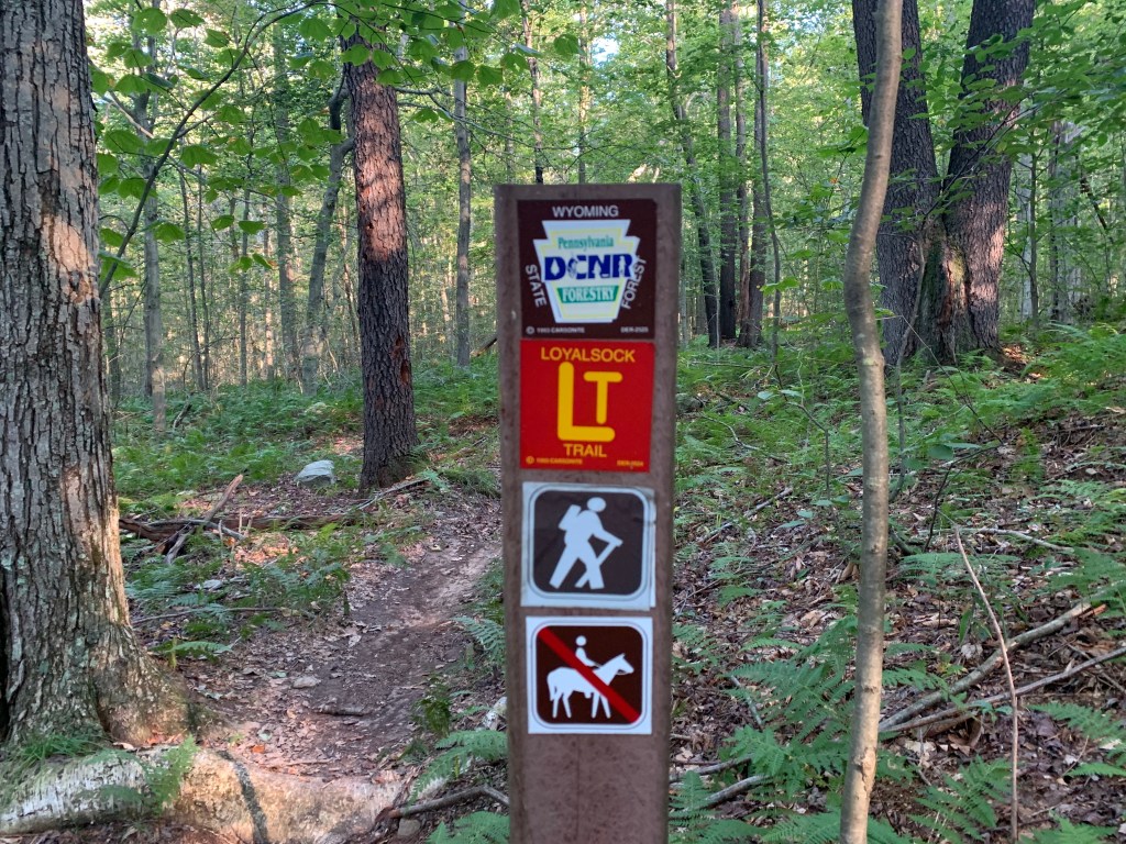 The so-called Link Trail came in to join the Loyalsock for a hot sec and confused me a bit in the twilight. At one point I ended up on it and its similarly featured metal medallion blazes before realizing I was off the Loyalsock Trail. I briefly considered just taking the shorter Link Trail down to the state park but then turned around in the dark to backtrack to the Loyalsock Trail proper and my hike back up the ridge to meet “Pioneer Road,” a stretch of trail that followed an old wagon road before bridges were built over Loyalsock creek. I was not going to come all this way to skip a single yard of the Loyalsock Trail, I grumbled out loud in my best whaler captain voice. Night came on fast and I was pretty beat. I made it as far as World’s End Vista at about mile 45.5 and looked at the sharp descent down toward the visitor’s center. I also thought of the likely straight shot back up the High Rocks trail portion on the other side of the state park creek side area. I did not want to do either of those two things in the dark. And so I looked at a relatively flat “Pioneer Road” trail spot and set up my tent for the night. No fire, no impact or trace, and a spot that I seriously doubt anyone had considering sleeping on past the 19th century. Yes, this was not technically permitted. I regret it and would never have taken a group to this spot. But I was solo and I was back up and hiking by 6:00 a.m. the next morning. I didn’t see a soul. Apologies to the state park and fellow backpackers for this breech of regulation and etiquette.