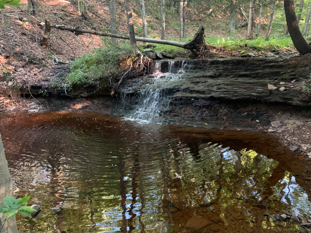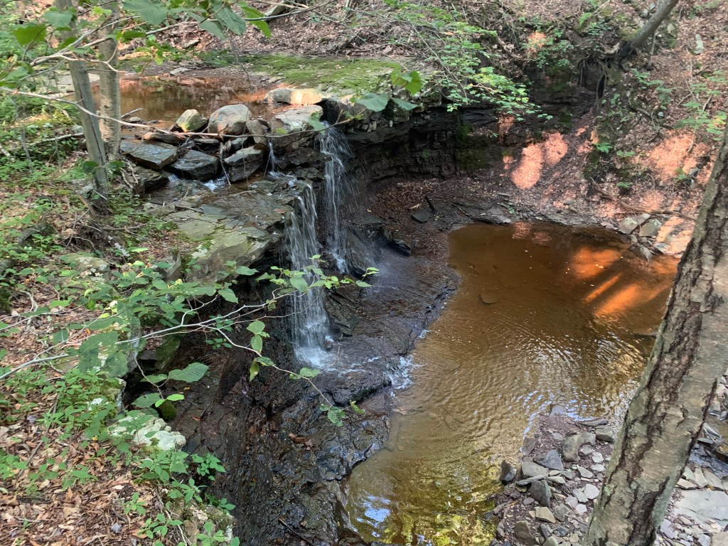 I was up at 5:30 a.m. and hiking by 6:00 a.m. — necessary for me to put in the miles at a somewhat leisurely pace. I do like to hike all day but I’m not trying to break speed records and I just want to take it all in. This section of the Loyalsock Trail was truly spectacular. There were waterfalls everywhere, despite the relatively dry season. Vistas too. There were amazing, towering sandstone features. As noted above, this aspect of the Loyalsock Trail made it feel to me like a greatest hits album version of Pennsylvania trails. Rarely did I go more than a couple miles without seeing something else of striking note. I took a particularly long break at one of the Ketchum Run waterfalls to enjoy a leisurely lunch and a cigar. I met a great Philadelphia area backpacking couple who knew the trail well. We talked theoretical linguistics and living in Morocco for a bit while also sharing trail recommendations.
