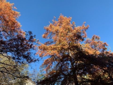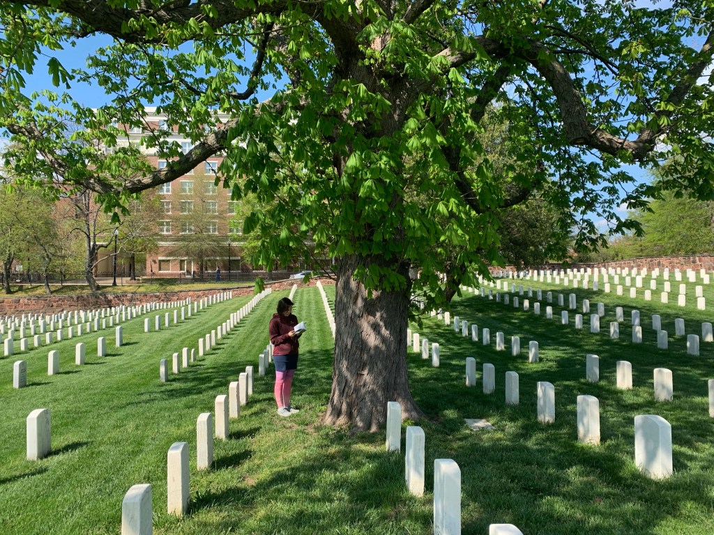 We live surrounded by trees. Within a stone’s throw of our apartment building are parks, cemeteries, and streets lined with species both native and imported. Thanks to the Alexandria National Cemetery and surrounding landscaped areas, I can explore 200 year old trees planted by early Alexandrian developers. I can also enjoy the curated trees of the 20-year old Alexandria African-American Heritage Park and the Hoof’s Run banks. But it wasn’t until this year that I began to commune with these trees, identify them, and watch carefully as they go through their annual cycle of rebirth. As a particularly vivid memory, Cheryl and I paused a little after midnight on our walk home after celebrating New Year’s Eve by a regal white pine across the street from our building and declared it “the 2020 Tree” in a hopeful burst of declaration. (For me, my earliest tree memories are running around the white pine-dominated second-growth forests of central Massachusetts. They’re not common in the wild down here for the most part and the 2020 Tree is a human-planted tree in our park.)