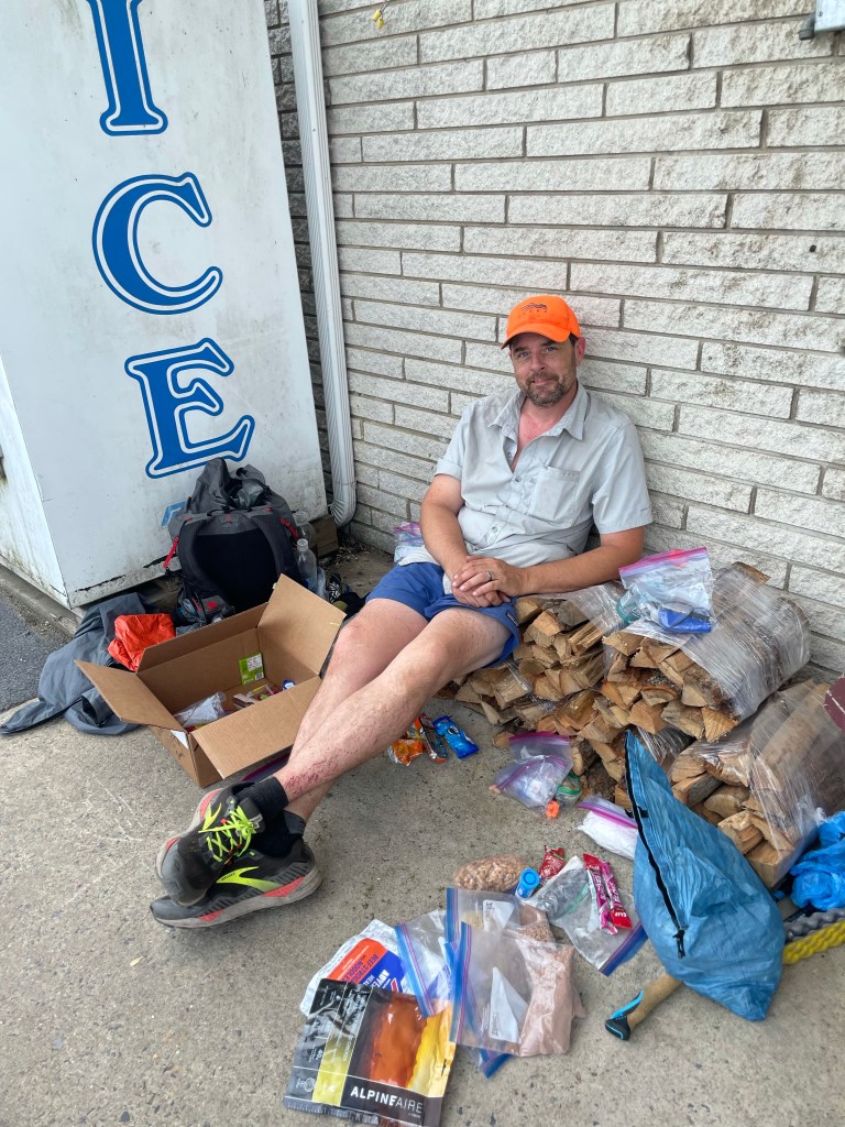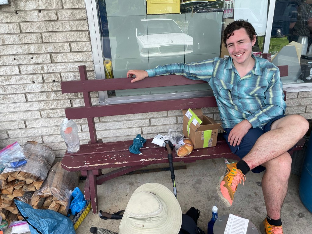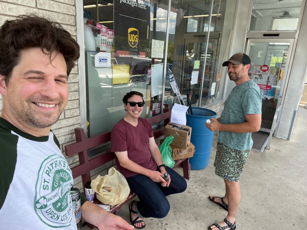Claudio and Kyle had hit Path Valley Market a while before me and were chilling with our resupply boxes out front like the hobos we in fact were. I rolled up and eventually they went inside to order some food. After a miscommunication where I thought I said I’d wait with the stuff outside for them to order and then come back out, I got grumpy after ten minutes or so and went in after them, whining. I got a little unlucky after my silly mistake to stay with our stuff in a town that assuredly wouldn’t have touched a thing and ended up behind a large group ordering from the deli. I opted for some pasta salad and a cold drink instead. Seemed fine for me as the afternoon heat was inching up and I realized I probably didn’t need a big meal in me before heading out to hit a few more road miles and a climb back up the ridge.