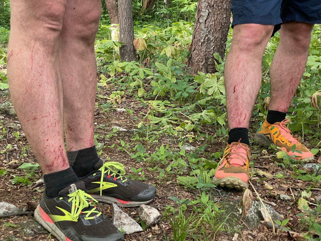 A note on weather — or rather, the expectation of weather. Sure enough, on our drive up on Friday a torrential rain had settled in over the entire region. Some reports had the rain lingering through Saturday and Sunday, which had me a little worried about being wet and cold on the trail. I had packed a full Gore-Tex shell and rain pants (plus umbrella) but I didn’t have a ton of insulation layers for staying comfy in an all-day rain. I panicked a little in Hancock and bought a light fleece at a bike outfitter just in case. Claudio grabbed a new base layer too. In the end, it didn’t really rain on us. Not Saturday or Sunday, at least. And it didn’t get very cold either. Our original packing selections were spot on. I grumbled a tad bit at the UL-defying overthinking and overpacking of my late purchase. Oh well. The cool weather also helped with something else: cicadas. Though evidence of Brood X cicadas surrounded us throughout the hike — dozens could be found on individual branches along the trail — it turns out cool and wet weather slows them down substantially. No kamikaze flyers or screaming choruses for us this week.