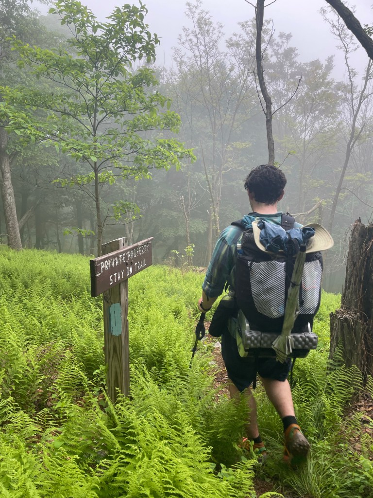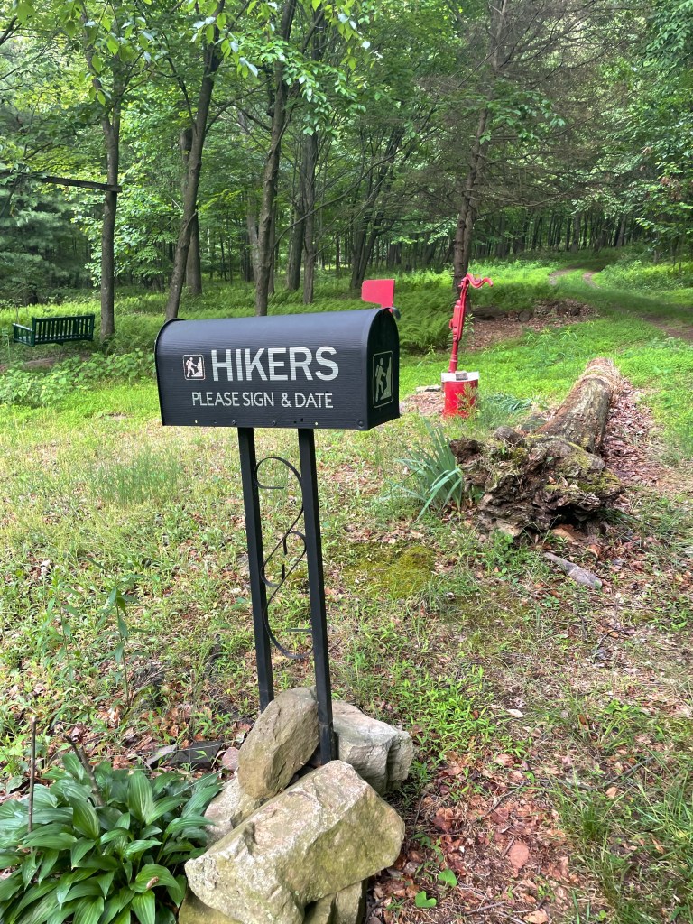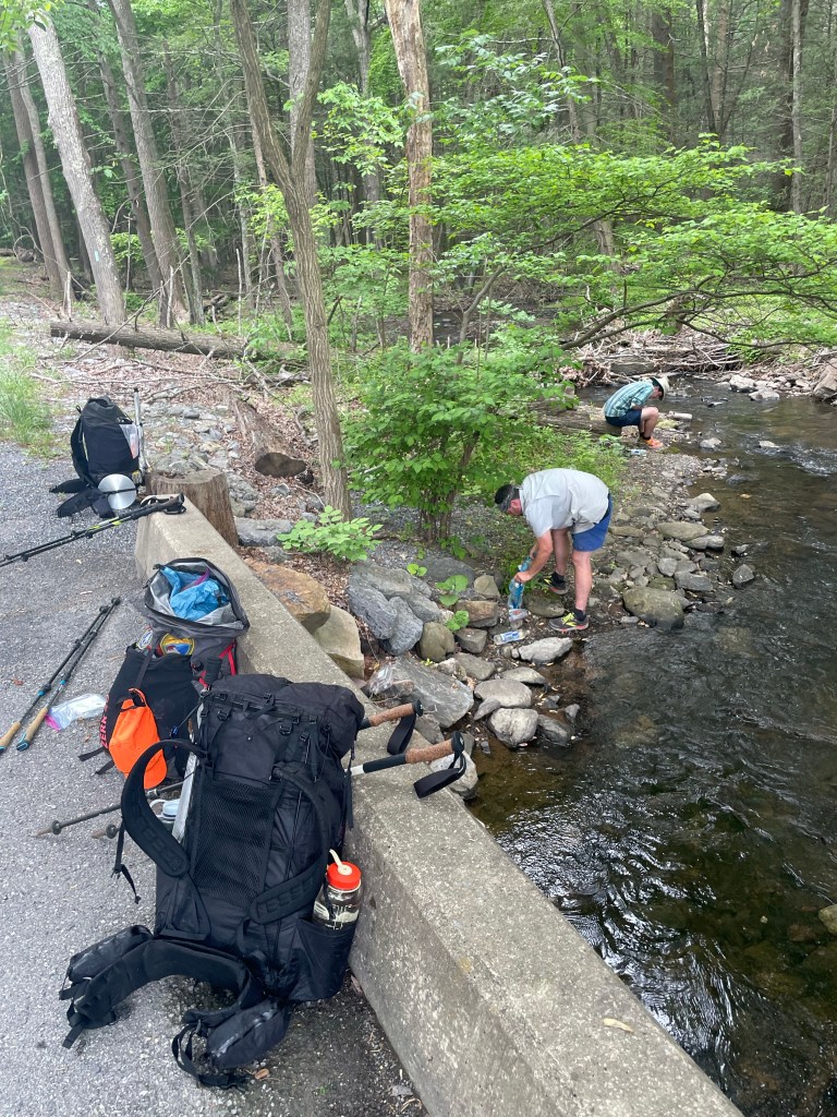 You see, after leaving the valley we needed to ascend a dry ridge up Knob Mountain and another nine miles or so to get to our one and only true backcountry, dry campsite of the week. This meant carrying lots of water. Did we get fresh, bottled water from Path Valley Market to make this easy? No, we did not. The spring on the side of the road that we hoped to grab water from was a swampy, muddy mess. The cow streams in the valley didn’t look much better either. Yikes, we thought. Then I looked over at a nearby house and notice they had a “Welcome” sign out front. “Let’s see how welcome they are,” I thought as I headed over to knock on their door to ask to use their hose. We seemed in luck as Sarah, the very cordial proprietor, promptly led us to the side of the house. All three of us filled up and we went our way up the steep ridge. It wasn’t until we took a sip of the water — and gagged — that we realized we weren’t as lucky as we thought. We didn’t think it was poisonous to us but Sarah’s water was pretty rancid. And poisonous/rancid or not, we didn’t have any other hydration options until the following morning.