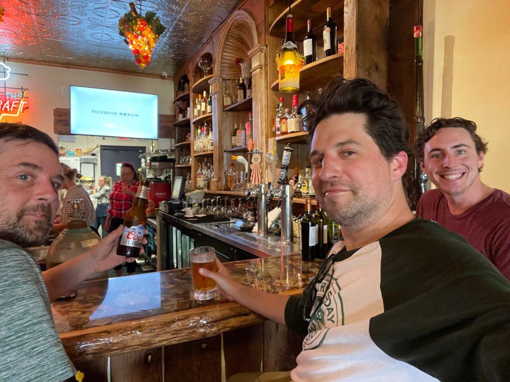 Even though our 115 Tuscarora Trail miles were done, WE weren’t done. Our car was ten miles north on the AT in Duncannon. After being pummeled by rocks for days, the smooth tread of the AT was blissful. So was the rolling farmland we strolled through and the epic views of Duncannon and the Susquehanna we got at Hawk Rock before our final descent. I understand the AT gets pretty rocky north of Duncannon but this stretch was downright pleasant. The temperature began to skyrocket into the 80s, reminding us how lucky we were to do almost all of our miles for the week in cool 60s and 70s temps. As we finished up at Claudio’s truck, all that was left for us was a backtrack to Hancock via Spring Run and a successful search for a breakfast diner along the way after we realized that at 11:00 a.m. in Duncannon Goodie’s was already closed for breakfast and the Doyle didn’t open until noon. Never you fear for our hungry, thirsty team. We even found a final — and fitting — beer at Buddy Lou’s for the Three Shakes Gang. (There was a teensy accident involving me not closing my trunk before pulling out of the parking lot . . . but Kyle swears his backpack and bear canister survived the tumble . . .)