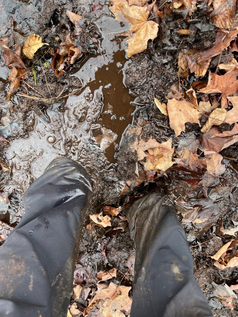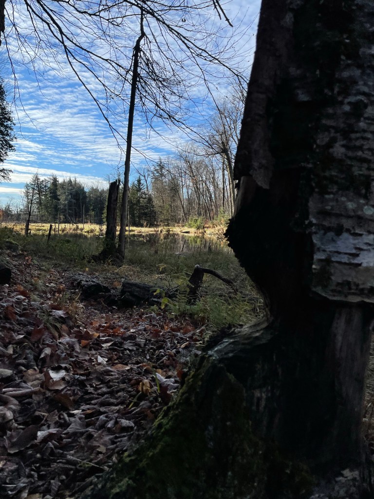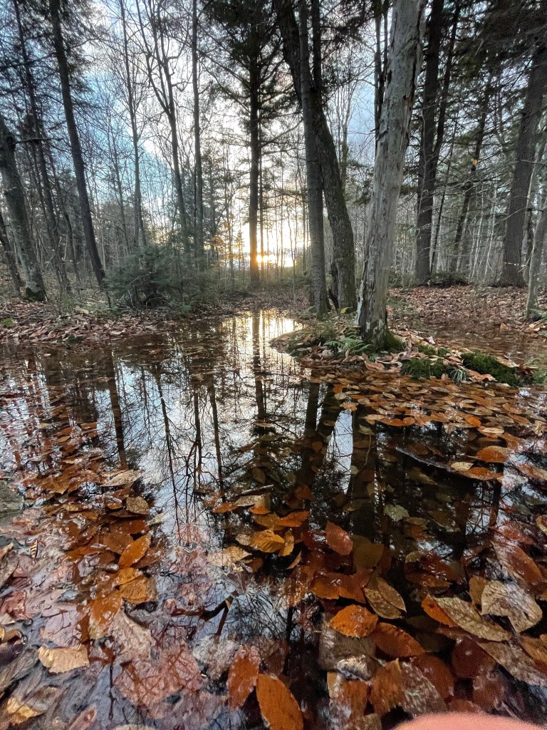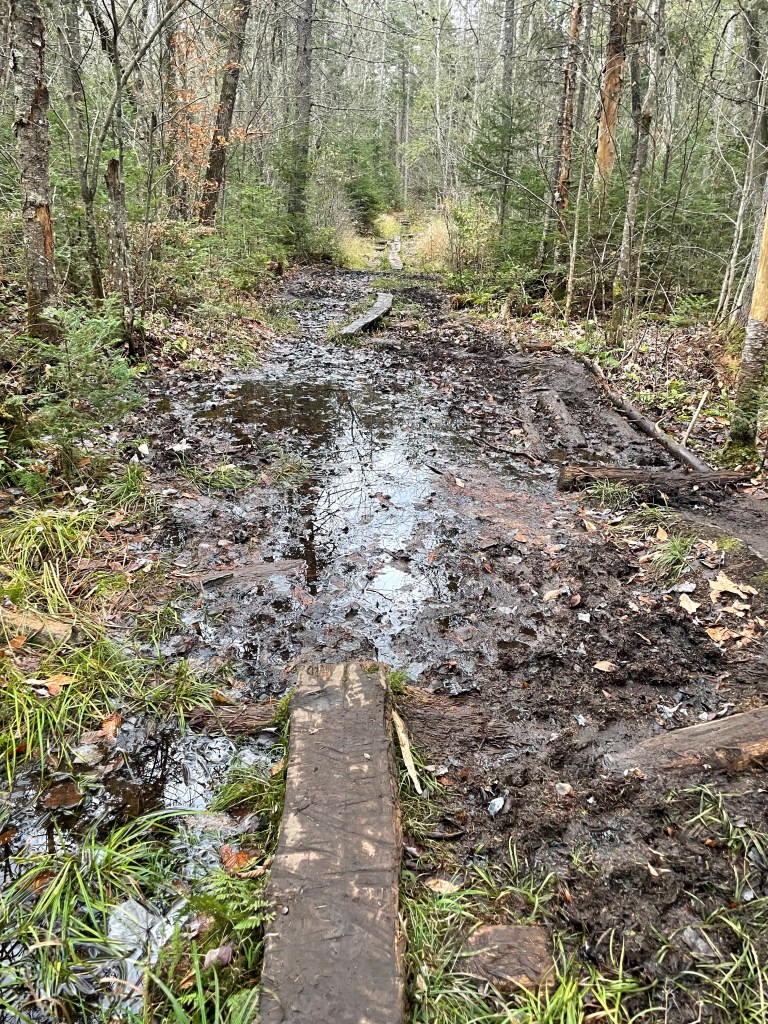 I needed to keep my pace up to complete 26 miles by evening but made sure to stop for breaks here and there to take it all in. In addition to the views and late autumn forest beauty, I encountered a couple challenges that brought the trail some fun texture: high-water levels, assisted by beaver dams, and lots and lots of mud.