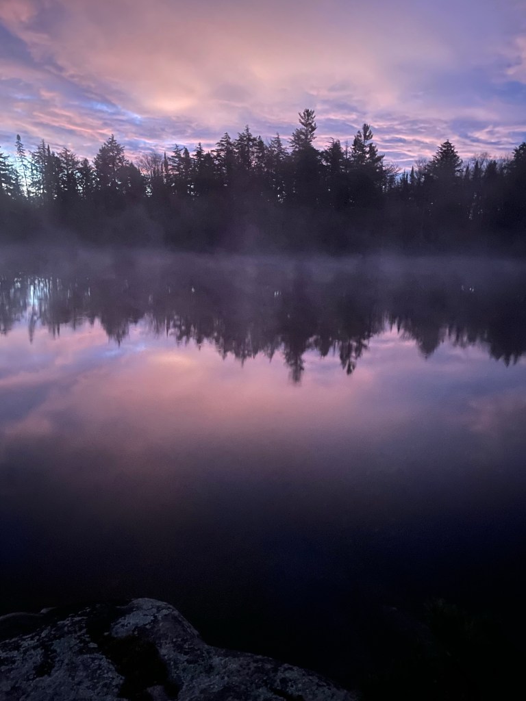 On Sunday, I was up early again and experienced a spectacular dawn of purple hues across Pincher Lake. I had 19 miles to get to my car, and a four hour drive home as a reward. I intended to enjoy my hike, sure, but I can’t lie that my destination was far more present in my mind than on my rambling Saturday. I did end up getting some light rain for part of the day. I was almost thankful for it because it meant I brought the right stuff and actually got to use it.