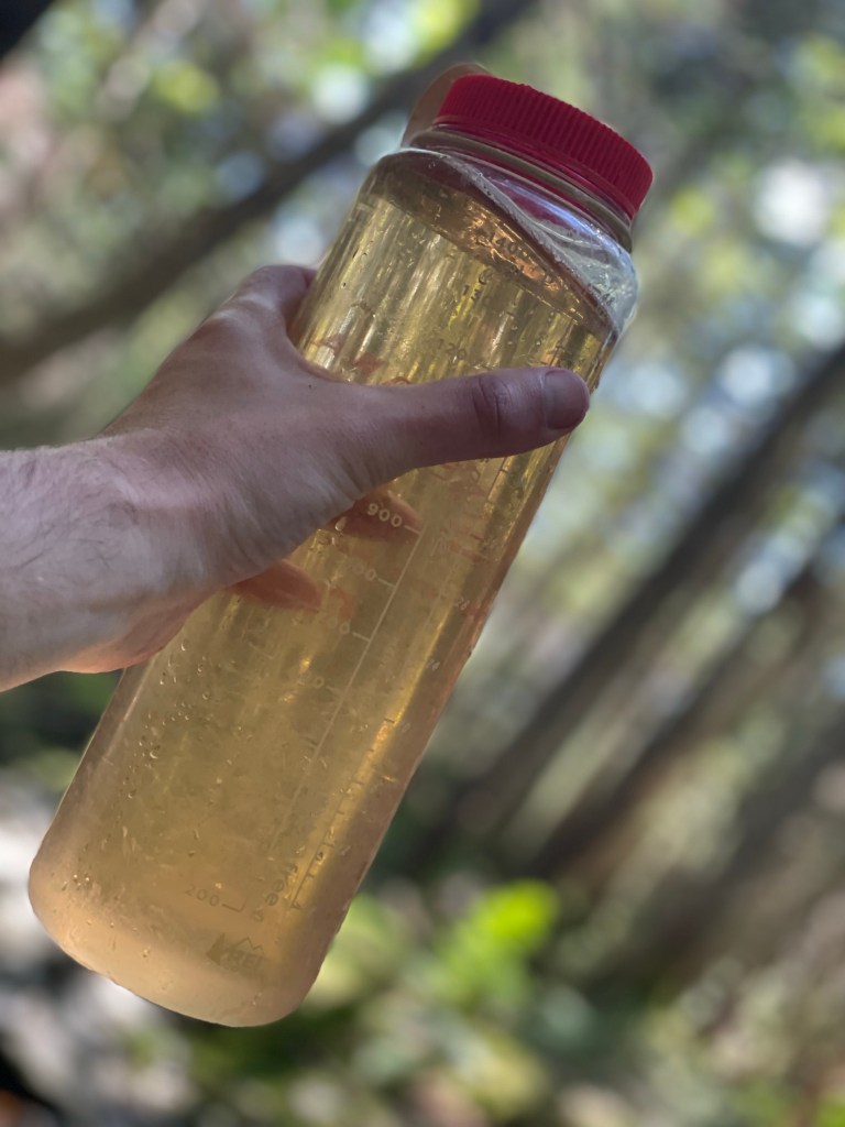 *Enjoyment in the backcountry where you have to schlep everything, however, comes with a number of asterisks. One of those asterisks is water availability and quality. The steep ridges of the northern part of the Long Trail had limited water generally speaking. But this stretch proved the most challenging. We filled up that morning at Butler but after that the going was tough. Things were either bone dry where it should have been flowing water or ended up as mere muddy puddles. We opted for the best of the puddles and dealt with odd colored water. (It tasted fine.) This was capped off by a search at Buchanan Shelter for a rumored black pipe sticking out of the ground that would mean the difference between a parched evening or a hydrated one. The three of us tried and failed. We accepted our fate and settled into our final night on the trail together. Luckily, a duo of great Massachusetts guys on their own section hike rolled in to share the shelter area with us and they persevered in their search until a scream of “Eureka!” echoed in the forest. They had found the black pipe, emitting a stream of liquid gold.