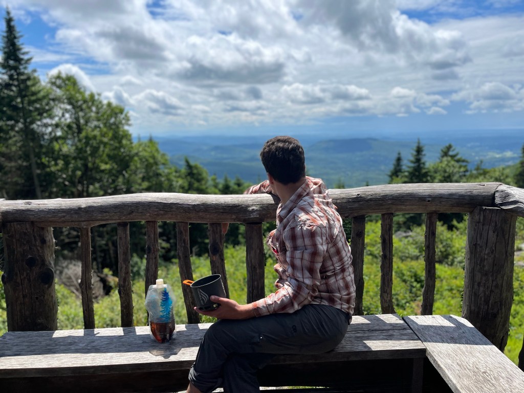 The latter half of the day was one for the ages. We walked into Smugglers Notch, off trail and eager for some creature comforts. At first, the elegant exterior of the Lodge at Spruce Peak made it seem like the kind of place that wasn’t open to outside guests like us but as we made our way closer the front door crew welcomed us with open arms. We lounged the afternoon away with beers and food, then made our way to Smugglers Notch Campground, where I had cached our resupply on the drive in — complete with whiskey handle and shower accessories – and reserved us a lean-to for the evening. Mark, sadly, had to make the trek back up the highway to the Lodge twice after forgetting his phone. But with that blip aside, we cleaned up and enjoyed our night and fire.