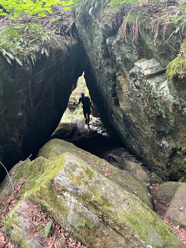We strolled the last few miles to Bear Hollow Shelter in good spirits, arriving with sunlight to spare and in the mood to enjoy our evening at camp. When we arrived, however, we found the shelter itself full of sleeping thru-hikers. We still had fun but in a hushed, don’t-wake-anyone-up kind of way. Up to this point, we had met a handful of NOBO Long Trail hikers on the trail, and a few going SOBO too, but this was our first night at a shelter with thru-hikers in full trail mood/mode. I’m sure they would have been a blast had we arrived a few hours earlier. The rough terrain up here, I tell you.