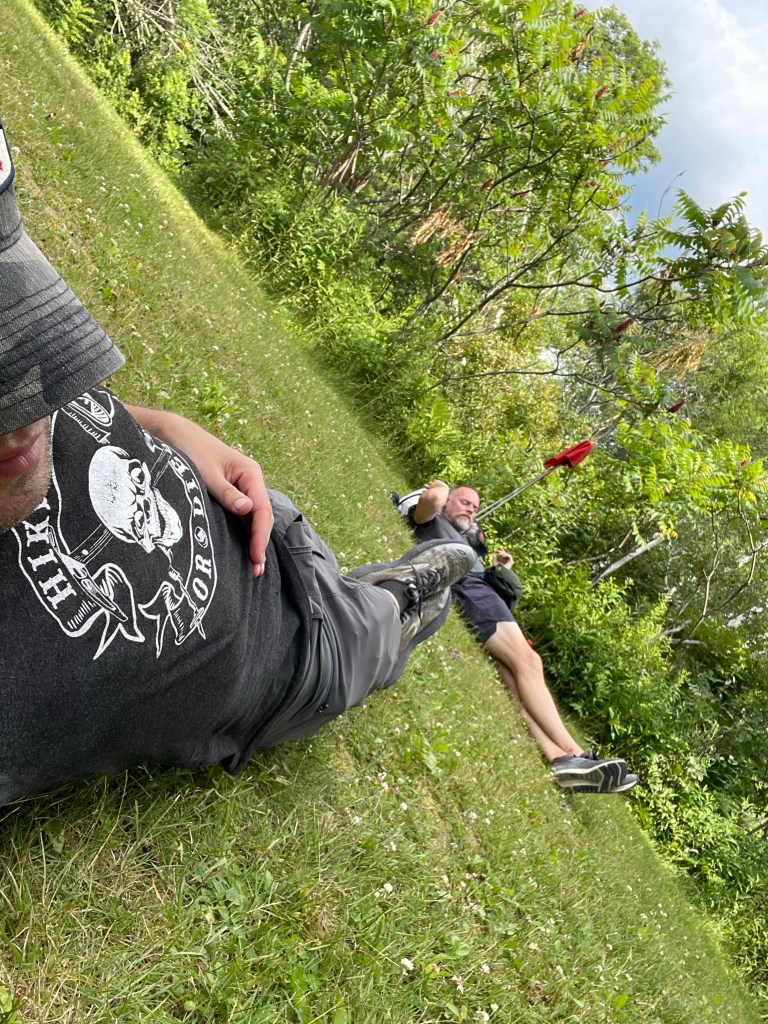 Our bar, the incredible Moog’s Joint, opened at 3:00 p.m. Mark and I killed time around Johnson over the pleasant afternoon and let our bodies relax. At one point we even found ourselves under a river overpass hobo style. We had fun, YMMV. 🙂 We reunited with Andrew who made good time on the trail, we feasted, we drank, we made friends, we crashed a retirement party — and most importantly, we took shelter from the worst of the day’s rainstorms. Thank you, Moog’s Joint! You were/are an all-time great trail bar.