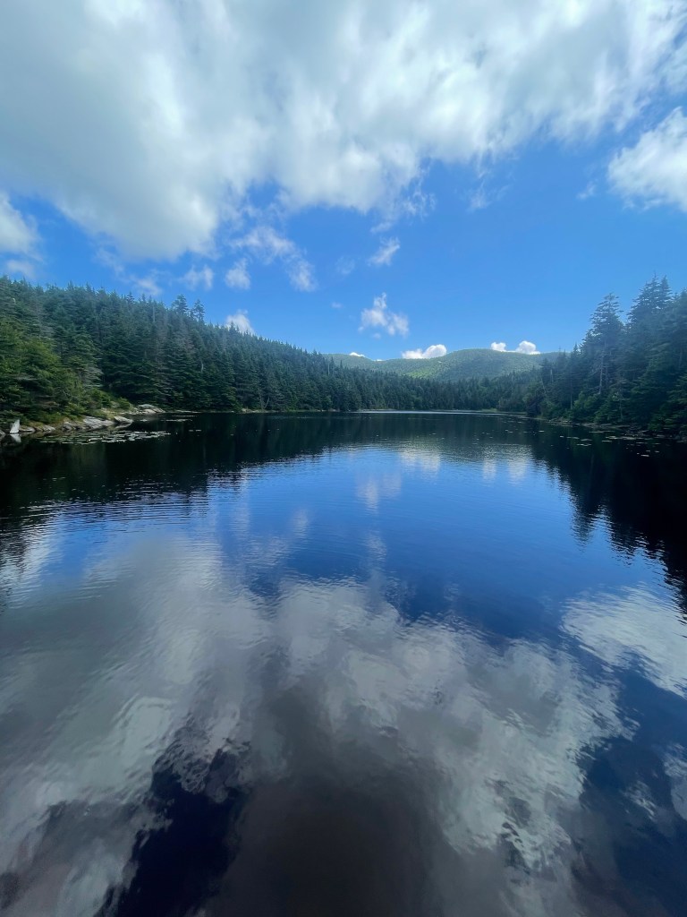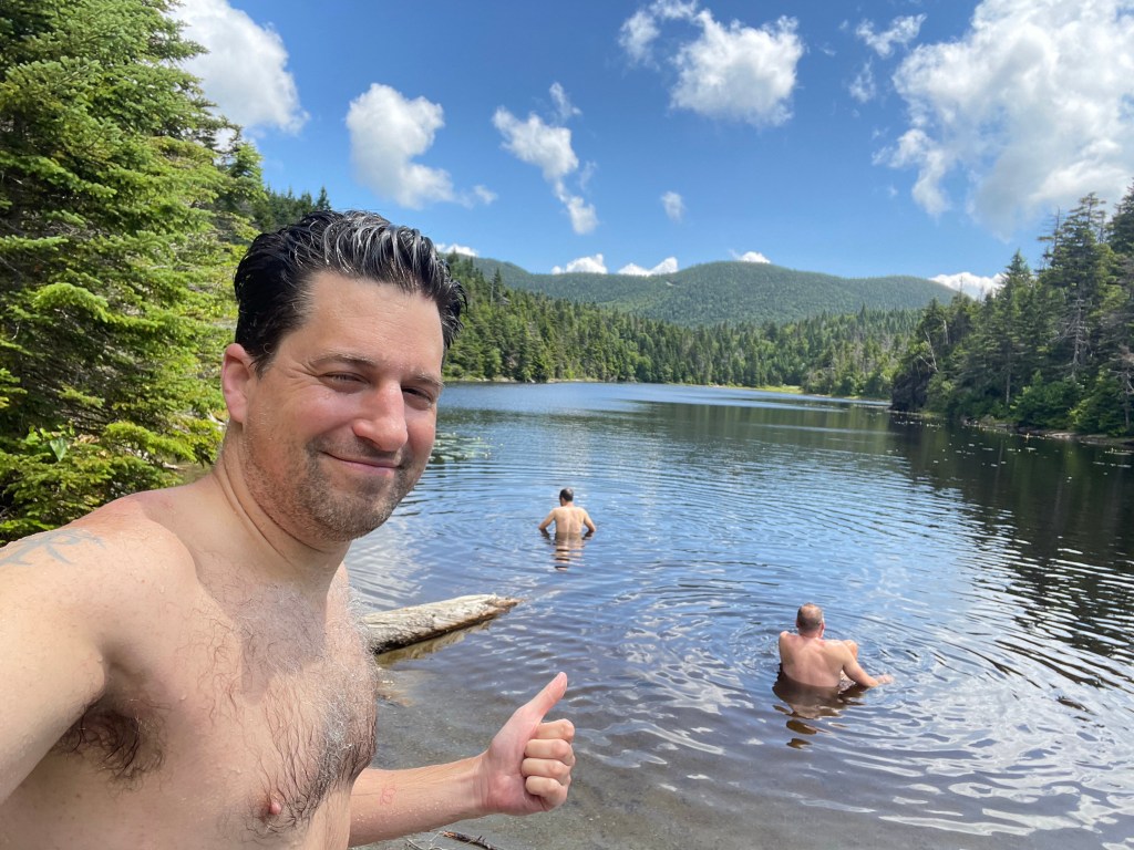 We were even more excited for day four. We had a great climb up Whiteface Mountain, fogged in but beautiful in the hemlock and birch old growth forest. The area up and over the Smugglers Notch ski resort slopes was magical in its moss and sunlight. And, of course, its views. We even had a great time swimming in Sterling Pond. Day hikers giggled as the three of us stripped down to hiking underwear and plopped in, unashamed to be the only swimmers in a spot that wasn’t actually a swimming hole. It wasn’t exactly NOT a place to swim either.